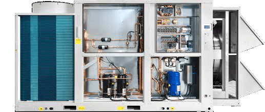 The 50/48 UC-(V)/UP-(V) new generation rooftops are completely redesigned and all models’ efficiencies are over Ecodesign (EU2016/2281) requirements, which will be valid in Europe in 2021. According to Ecodesign regulation, seasonal efficiency should be over 3.00 and 3.53 in cooling (SEER) and 2.95 and 3.20 in heating (SCOP) for the years 2018 and 2021 respectively. The 50/48 UC-(V)/UP-(V) Carrier rooftops reach 2021 efficiency standards in seasonal efficiency, while all the models are A class in full load according to EN 14511-2018 standard.